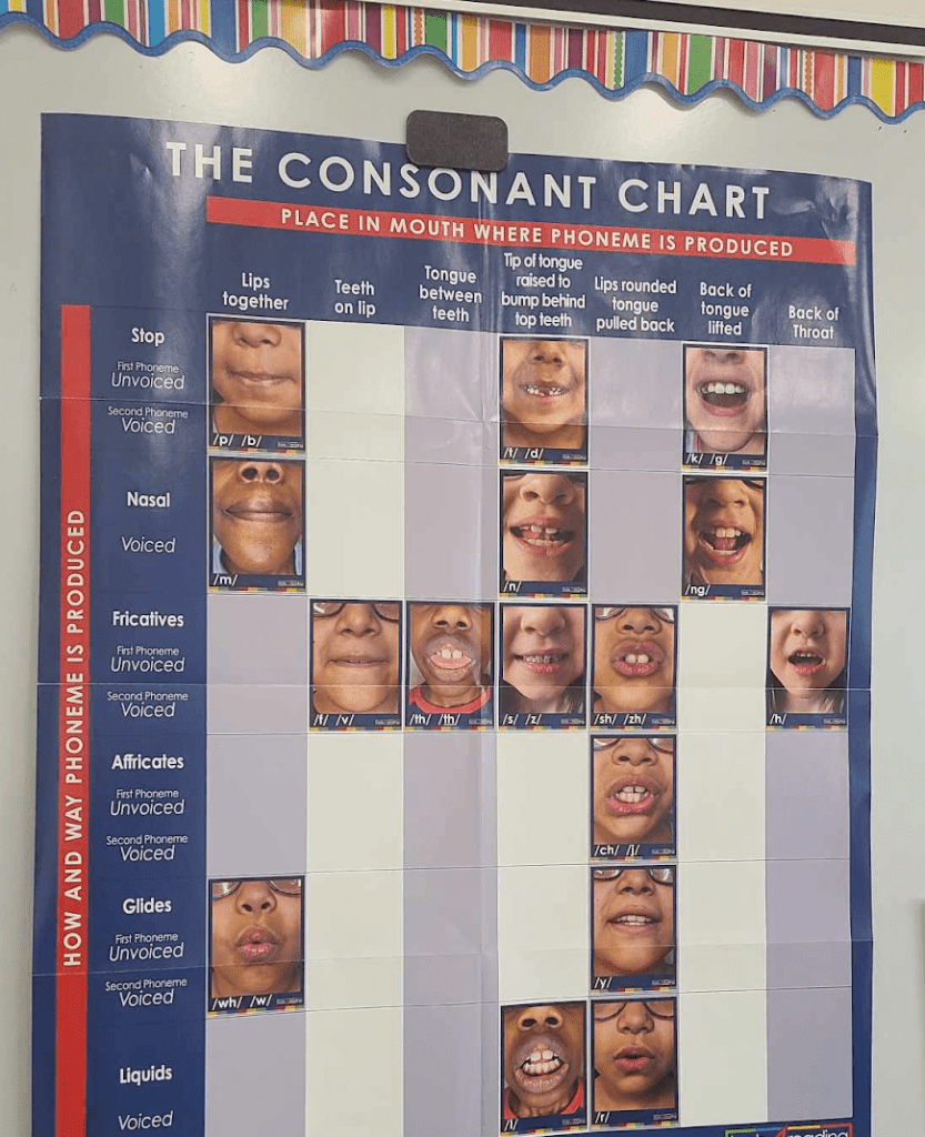 If you’re someone who’s interested in early literacy instruction, there is an excellent chance that you’ve heard of sound walls with articulatory gestures, a current hot topic in literacy. On this type of sound wall, speech sounds are laid out according to how they are produced. Consonants are arranged according to their place and manner of articulation and voicing. For example, the sound /b/ would be classified as a sound made with the lips, with completely stopped airflow, and with the voice turned on. Right next to it would be the /p/, which is the same as /b/, except with the voice turned off. As for the approximately 18 vowels, they are laid out in a valley shape, meant to represent tongue/jaw height and tongue backness. The speech sounds (or phonemes) are made visible by pictures of mouths producing each sound. The phonemes are linked with the letters (or graphemes) that commonly represent them, and a keyword picture is often also featured. Students are encouraged to consider their own speech production, taught the articulatory features of each phoneme and how to locate phonemes on the sound wall, to link to the corresponding graphemes. Having children attend to their production of speech sounds is proposed to enhance their learning of letter-sound correspondences, improve their phonemic awareness (the understanding that spoken words can be abstractly broken into phonemes, or speech sounds), and support their learning of reading decoding and spelling. In my work settings and on social media, there are lots of people asking about the efficacy for such an approach. As an SLP specializing in literacy and a university lecturer on reading disabilities and child speech disorders, this topic is pretty much the perfect intersection of my interests. I have dug in over the past few years and now aim to share some of the theory and research evidence, along with my own reflections on this trend. In this three-part blog series, we will first focus on the theoretical rationale for this approach. Part two will dive into the research evidence and part three will be my take on how we might proceed, based on the theory and evidence.